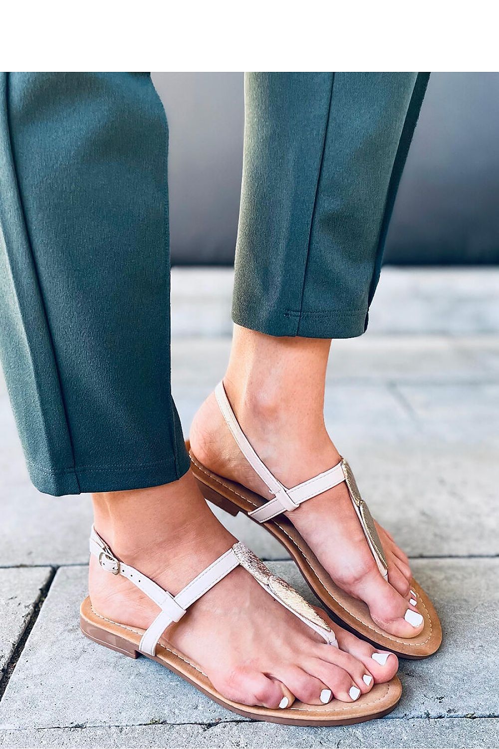 Women's flip flop sandals on a flat sole. If you want to look classic but special, you have to have them: ) All thanks to subtle decoration that beautifully emphasizes your mid-foot...) Outer material - ecological leather.