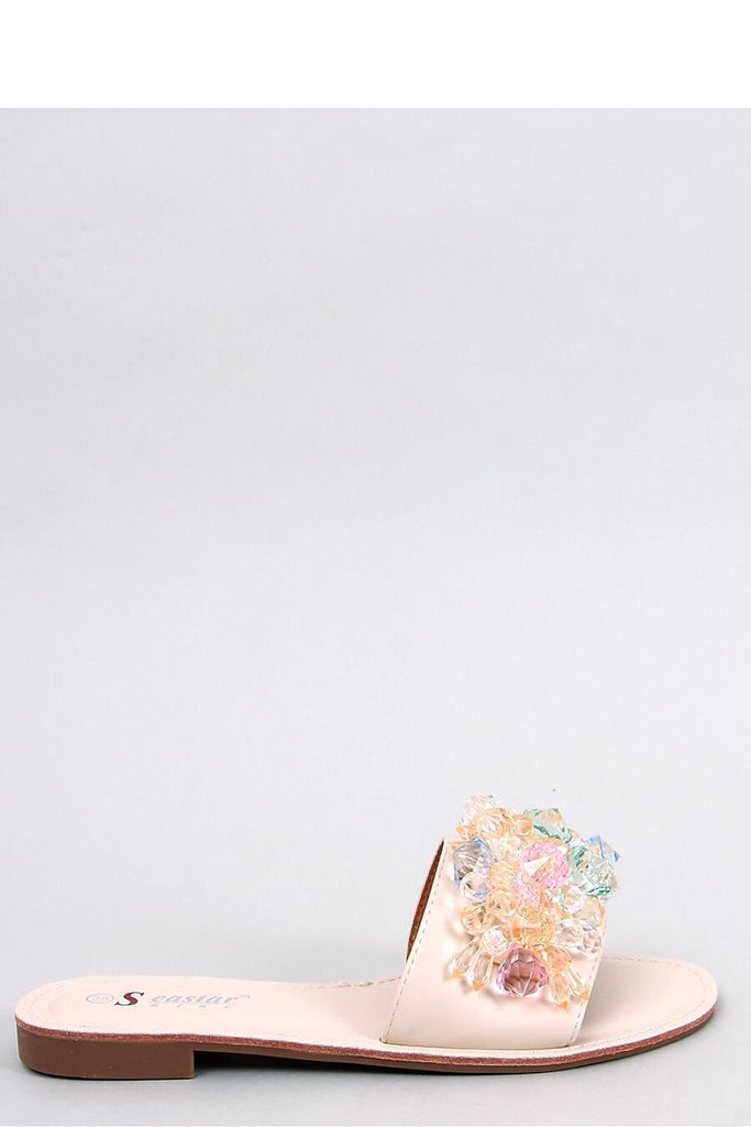 Women's flip-flops on a flat heel. The eye is attracted by a wide strap decorated with colorful and shiny stones : ) Wow effect guaranteed! Give them a chance to conquer your closet, and you won't regret it.... Outer material ? ecological leather. fabric artificial leather Size Insole lenght 36 23,5 cm 37 24 cm 38 24,7 cm 39 25,5...