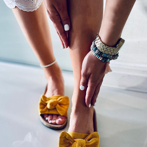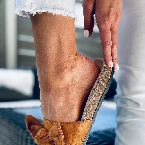 Women's cork flip-flops. This is a cult model with a subtle and charming bow... Profiled insole makes that long walks won't be terrible: ) They will surely fulfill your expectations and will become your favorite pair of shoes for the summer! External material ? ecological suede. fabric ecological suede Size Insole lenght 36 22,5 cm 37 23 cm 38 24...