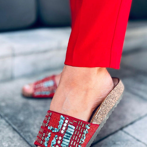 Women's flip-flops on a cork sole. The model is distinguished by impressive decorations in ethno style. The whole creates a very consistent, holiday look ... Perfectly profiled inside padded with fabric will be perfect for long summer walks: ) External material ? ecological suede. fabric ecological suede Footbed fabric Size Insole lenght 36 23,4 cm 37 24 cm 38 24,5...