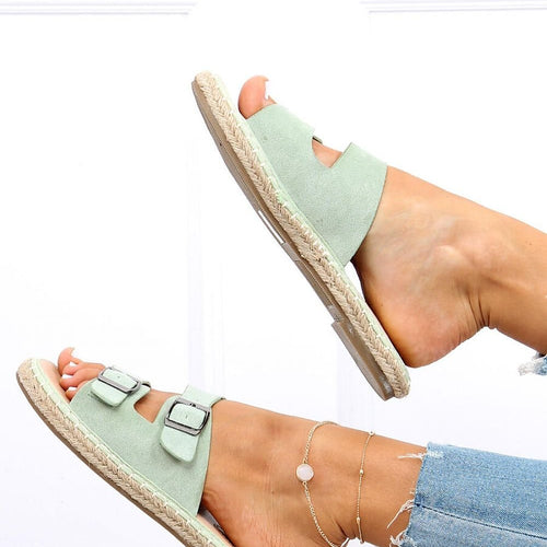 Women's flip-flops on a flat sole. Adjustable buckles ensure a perfect fit to the foot... Linen string finished sole is signature espadrilles. Perfect summer shoes : ) Outer material - ecological suede. fabric ecological suede Size Insole lenght 36 23 cm 37 23,5 cm 38 24,5 cm 39 25 cm 40 25,5 cm 41 26 cm