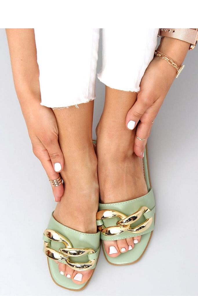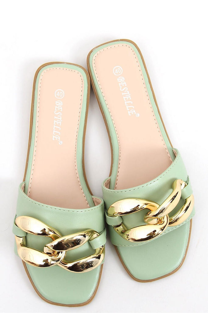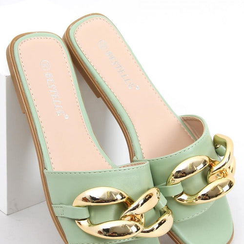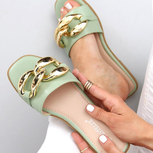 Ladies' flip-flops on a flat sole. If you follow the latest trends, this unique model with a square cut is made for you : ) Impressive chain is the most fashionable accessory... Give them a chance to conquer your closet! Outer material ? ecological leather. fabric artificial leather Size Insole lenght 36 23 cm 37 23,5 cm 38 24 cm...