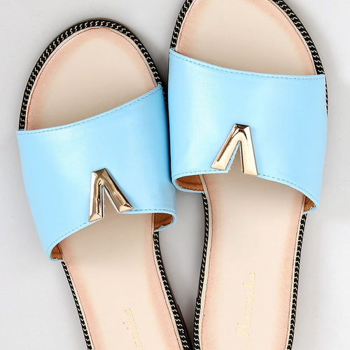 Faced women's flip-flops. Golden V-shaped decoration gives them an interesting accent that emphasizes their unique style. They should be yours today! Outer material ? ecological leather. fabric artificial leather Size Insole lenght 36 23 cm 37 23,8 cm 38 24,5 cm 39 25 cm 40 25,8 cm 41 26,3 cm