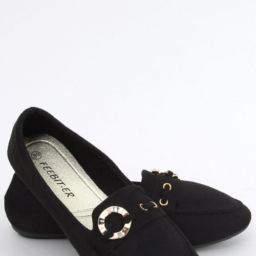 Women's suede moccasins. This classic model in matching to everything black color will be a perfect addition to subdued stylizations. Subtle golden decoration underlines their unique character... External material ? ecological suede. fabric ecological suede Size Insole lenght 37 23 cm 39 24 cm
