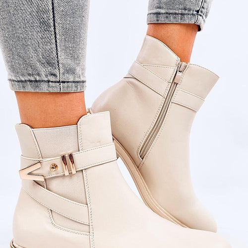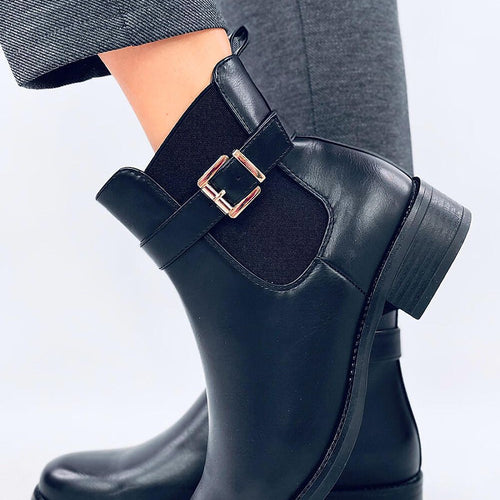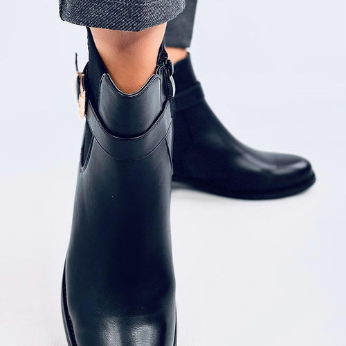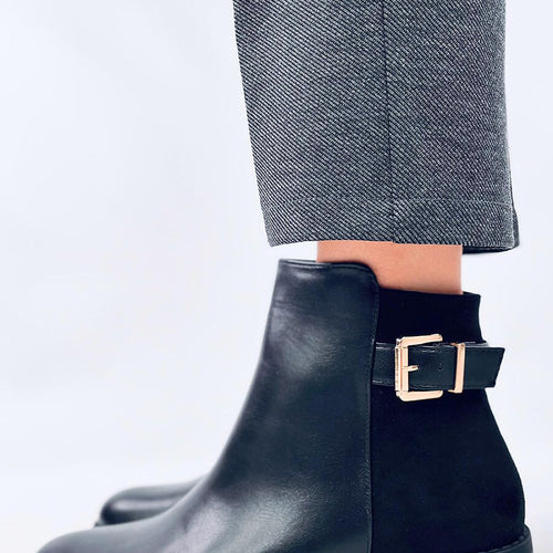Women's veneer boots - sablets with a gold buckle. If you're a fan of irreplaceable black, these will surely catch your eye : ) The boots have a rubber insert on the side of the upper and a zipper closure for easy putting on. They are made of organic leather, and the interior is lined with soft fur. fabric artificial...
