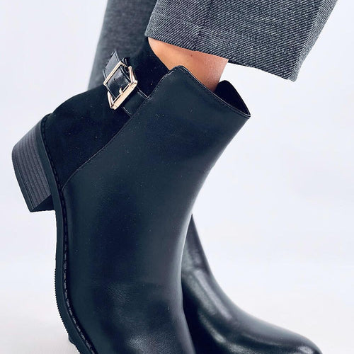 Women's boots on a flat heel. The fashionable combination of eco leather and eco suede goes perfectly with the matching black color for everything. A gold buckle additionally gives them character. The boots also have a zipper closure, which makes them easy to put on. The interior of the boots is insulated with soft fur. Outer material ? ecological leather...