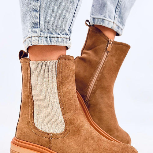 Women's suede boots with a cut of sable boots. The classic design of this model is enhanced with a contrasting sweater welt. A wide heel of 5,5 cm and a practical zipper closure are their undoubted advantages. These are the perfect shoes for every day! They are made of eco-suede, and the interior is lined with soft fur. fabric ecological...