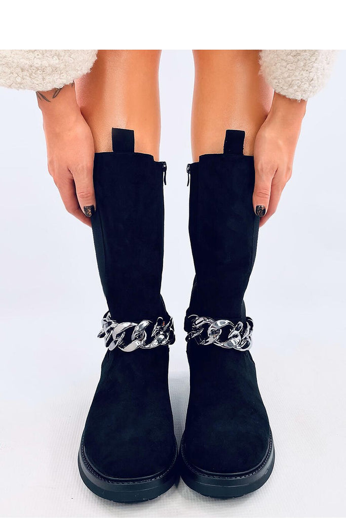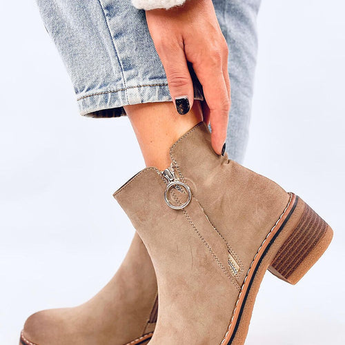 Women's suede boots - slippers. They have a unique cut with a high upper and an elastic insert on the side, which refers to the slippers. What catches the eye is the most fashionable chain, which is detachable. Don't wait and order them today! The practical zipper closure makes them easy to put on. They are made of eco-suede, on...