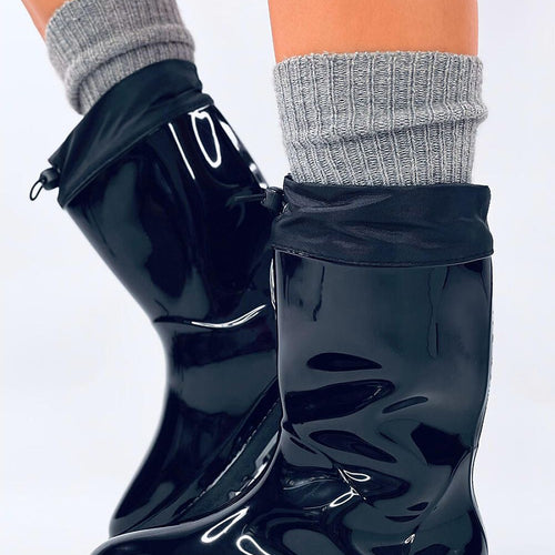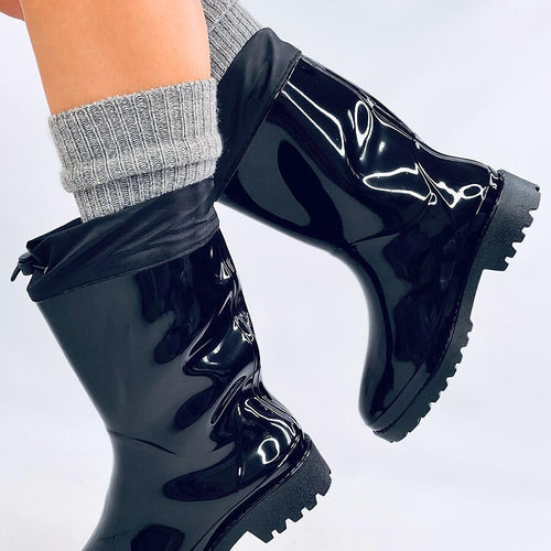 Varnished women's wellingtons on a protector. They will be great for more than one walk - rainy : ) The lacquered finish gives them character, and the welt at the top of the upper is their undoubted advantage. Outer material - rubber. fabric gum Heel height 3 cm Size Insole lenght 36 23,5 cm 37 24 cm 38 24,5 cm...