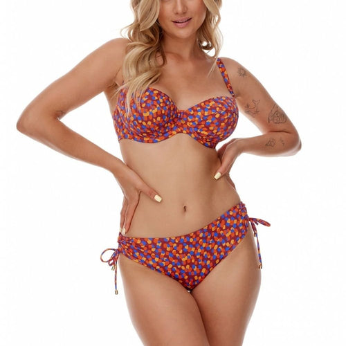 A bikini bra, designed for women more generously endowed by nature. Made of knitted fabric with a colorful motif, the bra has soft cups with modeling cuts and is padded with underwire, so it supports the bust perfectly. The straps are adjustable, non-removable. The width of the straps and the type of clasp match the size of the swimsuit. Panties...