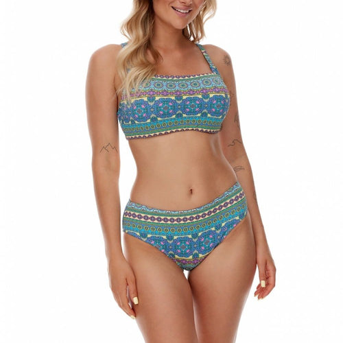 Bikini bra in the form of an underwired bralette. Made of knitted fabric with a motif of exotic leaves in various shades of green. Soft cups with vertical cut perfectly support mediums. The costume ties at the neck and fastens at the back. Panties are sold separately. Spandex 15 % polyamide 85 % Size Underbust Chest 65C 63-67 cm 81-83...