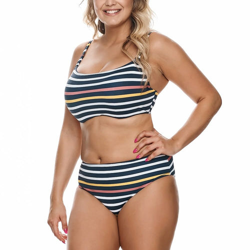 A swim bra designed for large busts, made of microfiber with colorful stripes. Soft underwired bra in the form of a band. Adjustable straps are not detachable. The width of the straps and the type of clasp is matched to the size of the swimsuit. Spandex 15 % polyamide 85 % Size Underbust Chest 65M 63-67 cm 101-103 cm 70H...