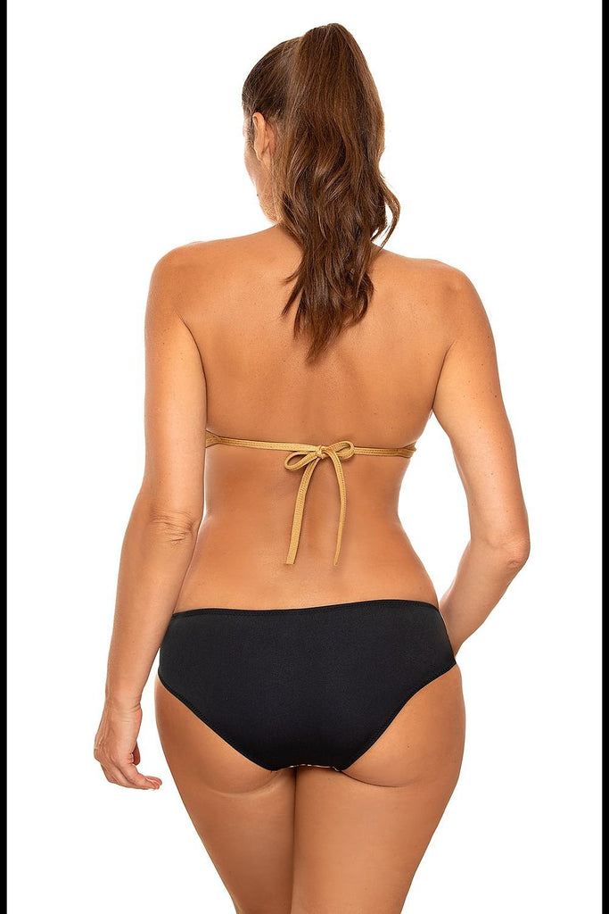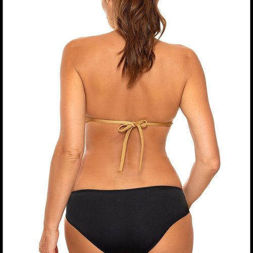 High-waisted panties with a fancy drawstring at the sides, finished with a gold ornament. Spandex 15 % polyamide 85 % Size Hips width 42 100-104 cm 44 104-108 cm 46 108-112 cm 48 112-116 cm
