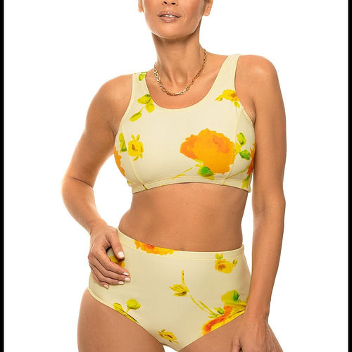 Two-piece swimsuit in a sporty style. Perfect Fit model, perfect fit. Bra in the form of an elastic top without underwire, removable inserts. High-waisted briefs. Made of Italian fabric Carvico Tessuti. Beautiful colors emphasize tan. Polish product. Spandex 20 % polyamide 80 % Size Hips Underbust Chest 36 86-90 cm 66-71 cm 84-85 cm 38 88-92 cm 69-74 cm 86-87...