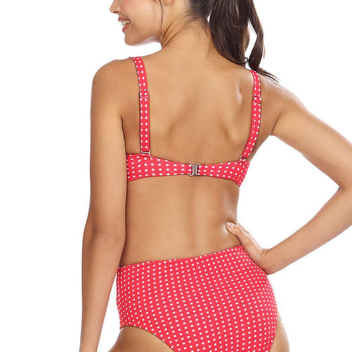 Two-piece swimsuit - soft cups - wires and vertical underwire support and shape breasts - sides reinforced with additional mesh - straps non-removable, adjustable - metal hooks for straps - comfortable buckle fastening on the back - Waisted briefs with wider sides Spandex 20 % polyamide 80 % Size Hips Underbust Chest Bottom size Cup Size 100D/48 113-116 cm 98-102...