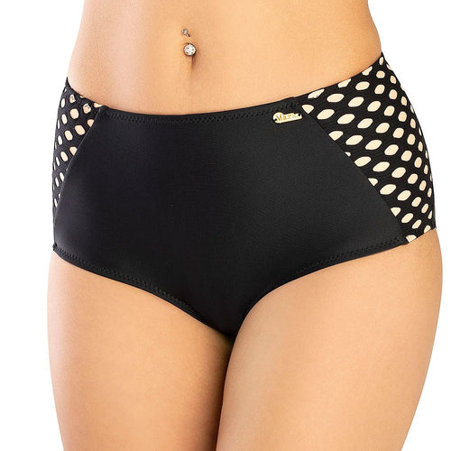 Looking for something to spice up your beach styling? Look out for this: a black high waisted bikini bottom with see-through sides. A perfect proposition to your favorite swimsuit. Front smooth, comfortable, hides the tummy. Sides made of transparent, mesh tulle with elastic properties. Universal design that optically slims the figure. High quality Italian fabric, Spandex 20 % polyamide 80...