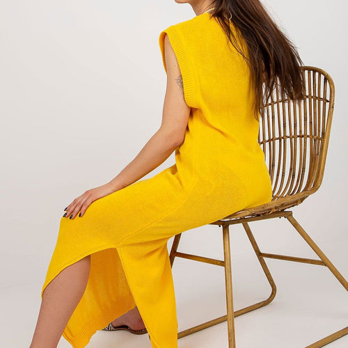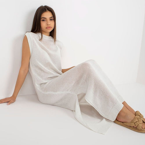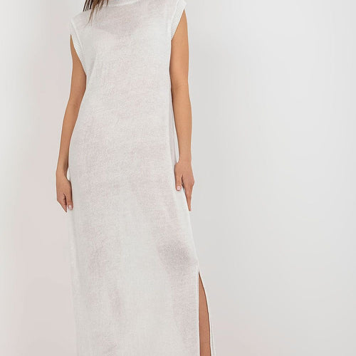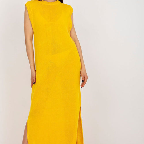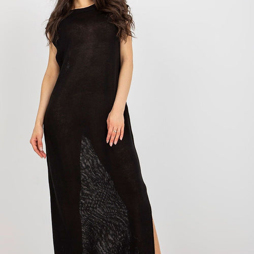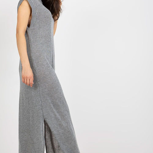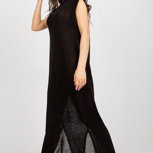 Long knit sleeveless dress with decorative slits on the sides. The dress is perfect for the beach and beyond. Acrylic 70 % wool 30 % Size Total length Chest one-size-fits-all 148 cm 84 cm
