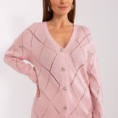 Elegant and stylish women's cardigan is the perfect choice for cooler days. Made of a combination of acrylic and wool, it provides warmth while remaining light and airy. The openwork pattern gives it a subtle elegance, making it perfect for both casual and more feminine stylizations. The cardigan has a standard length, long sleeves, and a V-neckline that accentuates the...