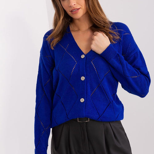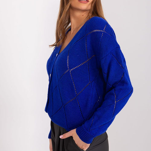 Elegant and stylish women's cardigan is the perfect choice for cooler days. Made from a combination of acrylic and wool, it provides warmth while remaining light and airy. The lacy pattern gives it a subtle elegance, making it perfect for both casual and more feminine stylizations. The cardigan has a standard length, long sleeves, and a V-neckline that accentuates the...