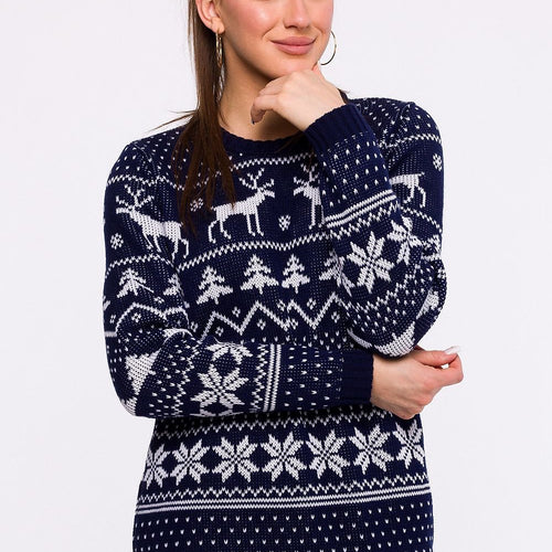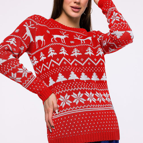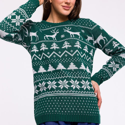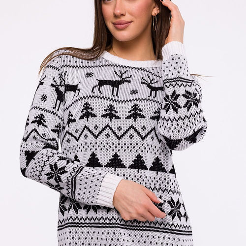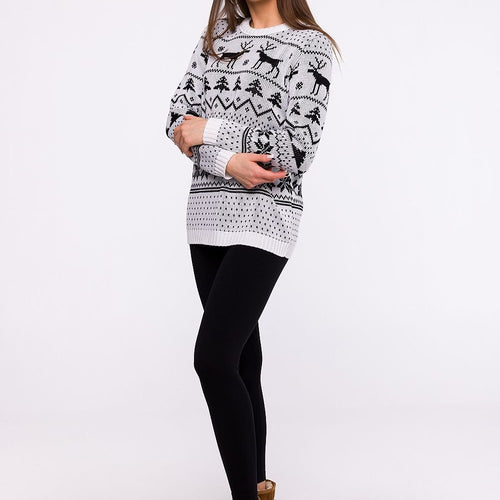 Holiday sweater with a simple cut, made of pleasant to the touch acrylic yarn, which ensures comfort and warmth on colder days. It has long sleeves finished with a cuff, which fits well on the wrists, adding elegance and comfort. The classic neck and holiday pattern create a harmonious whole, which will work perfectly during winter occasions and will bring...