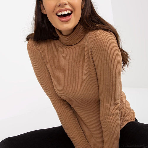 Elegant women's sweater, perfect for both everyday wear and work. Made of high-quality blend of viscose and elastane, it provides comfort and perfect fit. The sweater has a ribbed, textured material that adds character and subtle elegance. It has long sleeves and an off-the-shoulder neckline, which stylishly accentuates the shoulders, giving the outfit a touch of femininity. Additionally, the shiny...