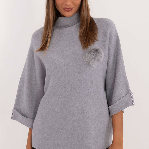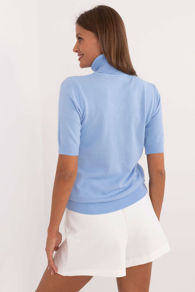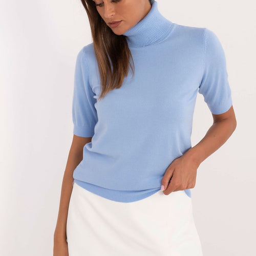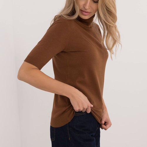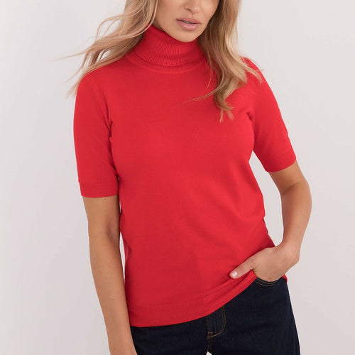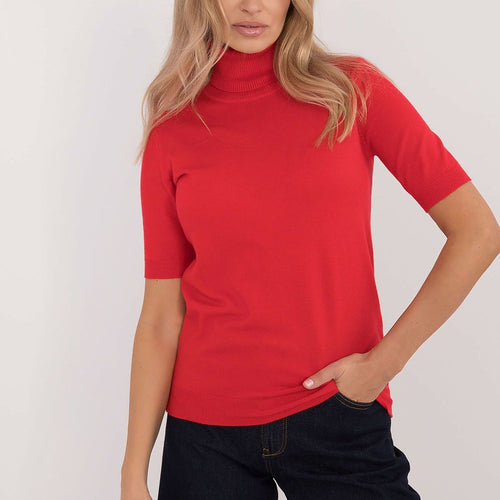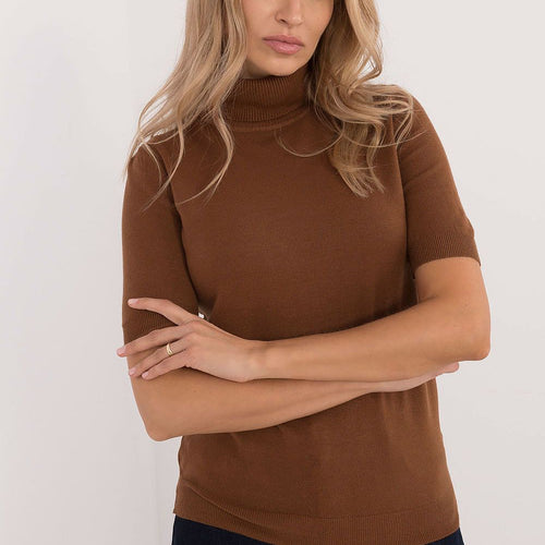Short women's sweater made of ribbed yarn, characterized by a wrap-over design. A deep neckline both in the front and back adds elegance and subtle charm. This stylish sweater is a perfect choice for everyday wear or special occasions. Designed and sewn in Poland, it combines high-quality craftsmanship with trendy design. Acrylic 85 % Nylon 15 % Size Total length...
