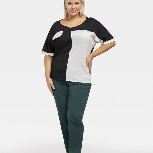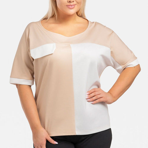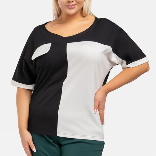 The Teya two-tone blouse is a sophisticated addition to your closet that adds a note of elegance and style. Its unique two-tone design with a patch in the form of an imitation pocket gives it character and unique charm. Made of high-quality materials, it provides not only a stylish look, but also a comfortable wear all day long. The Teya...