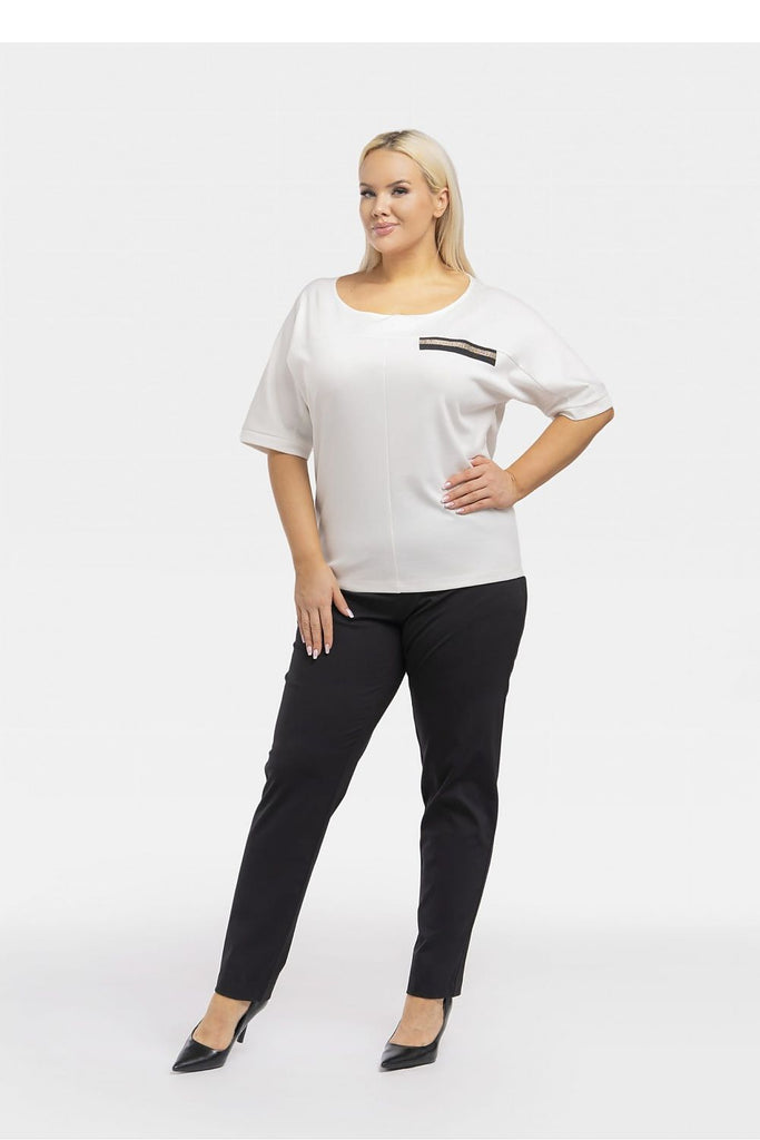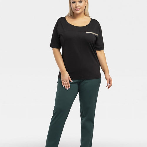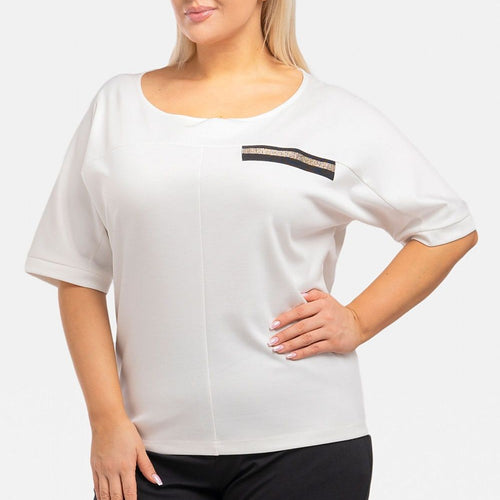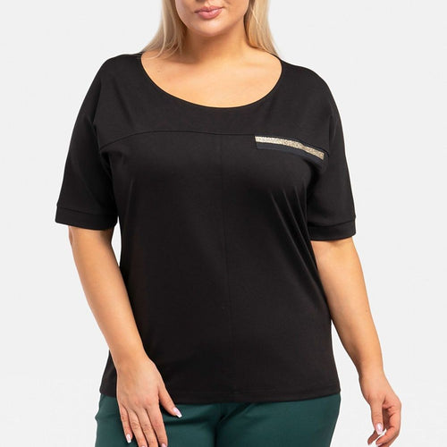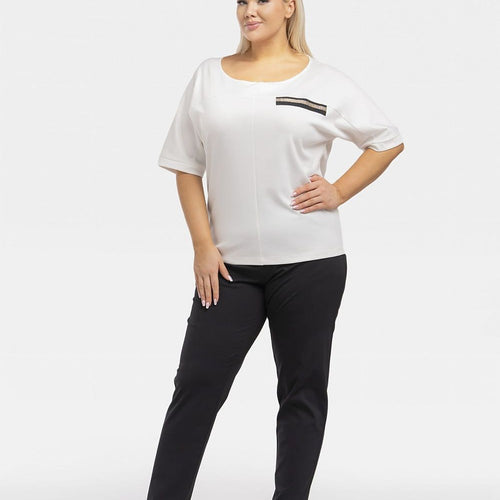 Teya blouse with decorative ribbon is a fashionable and elegant solution for your closet. Its decorative ribbon in the form of an imitation pocket adds a unique touch, while the slimming topstitching gives the silhouette a slim look. The kimono model adds lightness and style to the blouse. Made of high-quality materials, it provides not only an attractive appearance, but...