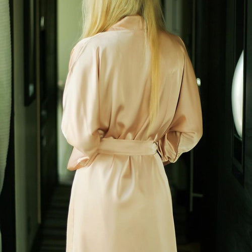 Made of flowing satin, with a comfortable cut, the underskirt is a must-have in an elegant woman's closet and will work well in any situation. The kimono sleeves, which give you the opportunity to wear it in two ways: rolled up cuffs or straight. It all depends on what mood you are in. This short kimono cut satin gown has...