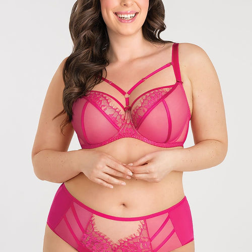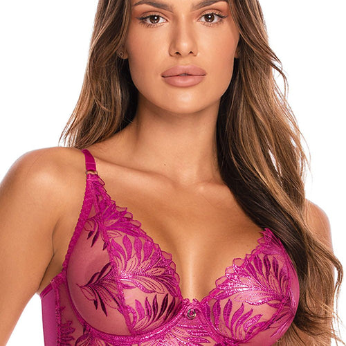 Charming and glittering model of soft bra in shimmering fuchsia color is an absolute hit of the coming warm season ! The model made of richly decorated floral embroidery combined with soft tulle on the back will ensure you the highest comfort of wearing, combined with the most fashionable accessories in silver color. The model has non-removable, adjustable straps and...