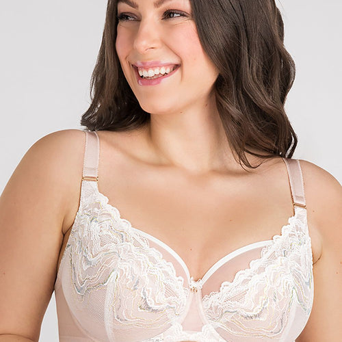 Soft bra type soft perfect for larger breasts, fastened at the back. It has side and bottom underwires that provide excellent support and comfort when worn. Deep cups made of stable tulle, trimmed with broken tape using flat seam technology, are decorated with delicate lace. Soft, non-detachable straps do not dig into the body, and the bra band is adjustable....