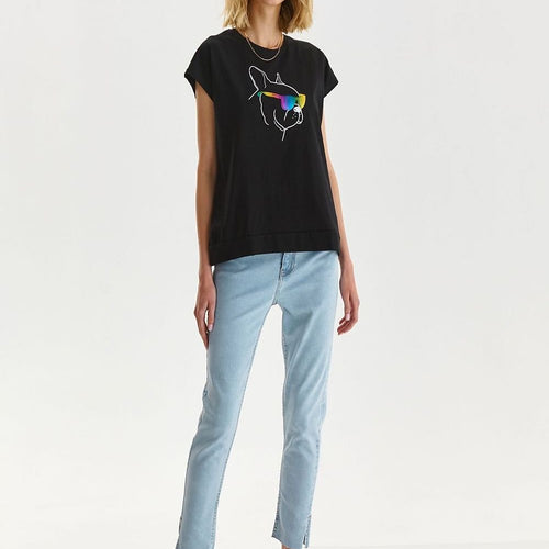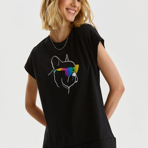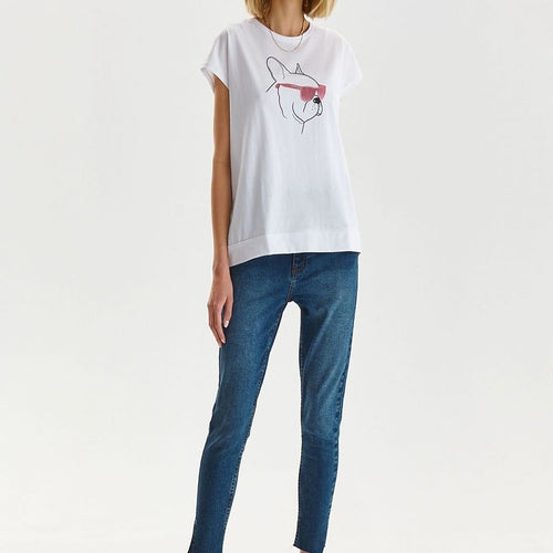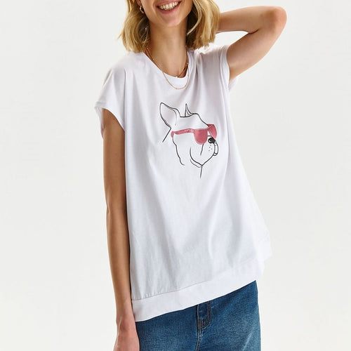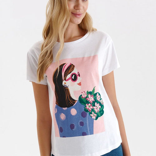 Women's t-shirt with short sleeves and a round neckline. T-shirt made of printed fabric. Cotton 100 % Size Total length Chest one-size-fits-all 57 cm 86 cm