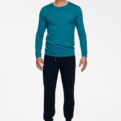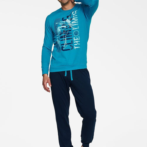 The HENDERSON BEAST two-piece men's pajamas is a comfortable sleep set that consists of a loose-fitting long-sleeved T-shirt and long-legged pants. The pajama top has a round, shallow neckline, which, like the sleeves and bottom of the shirt, is finished with a wide hem. The sweatshirt is decorated with a print with an American National Park theme. The pants have...