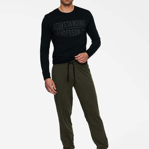 HENDERSON BADGE two-piece men's pajamas consist of two pieces: smooth long pants and a smooth long-sleeve shirt with a round neckline. On the chest there is an elegant embossing with the brand's logo. The straight-leg pants have ribbed cuffs at the ankles. A wide elastic waistband and additional binding in the color of the pajama top give you the possibility...