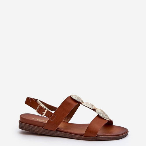Women's sandals from the brand Sergio Leone. Made of eco leather. Fastened with an adjustable strap with a buckle, they guarantee a precise fit to the foot. Decorations on the front on the strap, which add subtlety and style to any summer styling. You should definitely have them! fabric artificial leather Footbed artificial leather Heel height 1.5 cm Size Insole...