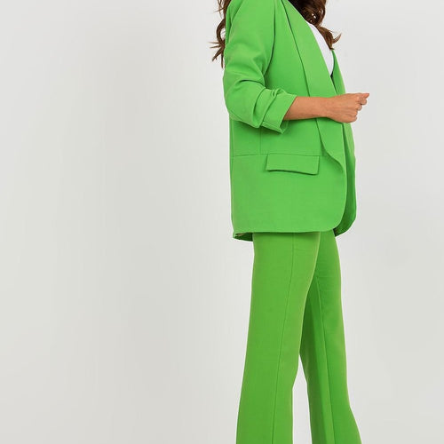 Women's jacket with 3/4 sleeves, unbuttoned. Lined jacket with imitation pockets. On the shoulders sewn pillows. An ideal choice for many occasions. Spandex 5 % Polyester 95 % Size Chest L 91 cm M 86 cm S 82 cm XL 96 cm XXL 100 cm