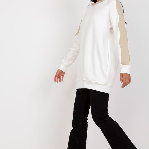 Sweatshirt in an extended cut with long sleeves and a boat neckline. Sleeves with contrasting stripes. Cotton 90 % Spandex 10 % Size Chest L/XL 91-96 cm S/M 82-86 cm
