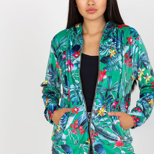 Women's sweatshirt with long sleeves and a hood, zippered. Slip pockets on the sides. Spandex 10 % Viscose 90 % Size Chest L/XL 91-96 cm S/M 82-86 cm
