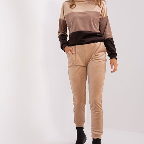 Classic tracksuit set created from a pleasant high-quality knit fabric is an ideal choice for all women who want to feel comfortable in a tracksuit and look stylish at the same time, yes, it is possible! The top of the tracksuit is a hoodie with a kangaroo pocket, where you can successfully fit your phone or wallet. The long sleeves,...