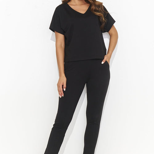A set full of femininity and freedom, made of a pleasant to the touch, soft knit fabric. The upper part is a loose T-shirt with wide, short sleeves, decorated with a charming blouse. The lower part, in turn, is a fitted, long skirt with two slits, emphasizing the hips with an elegant welt. In this set you will feel both...