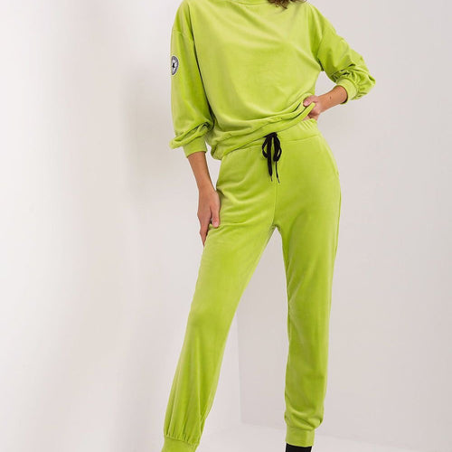 Elegant and feminine sweatshirt set made of velour knit is a combination of cozy comfort and chic style. The sweatshirt is tucked in over the head, has a round neckline and long sleeves. On one of the sleeves you will find an elegant patch, which adds originality to the set. The pants have a tapered leg finished with a drawstring...