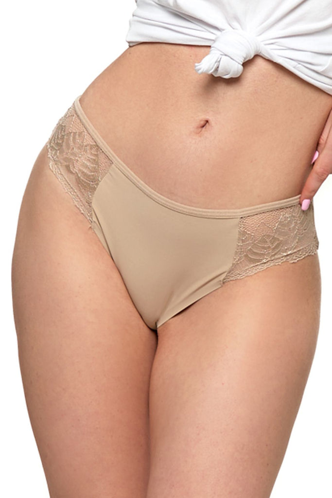 Women's elegant panties in beige 2-pack, trimmed with lace. This unique pair of panties was created for women looking for lingerie that combines both comfort and style. There are two pairs in this 2-pack of panties, each distinguished by its distinctive pattern and finish. One pair is a panty with a delicate floral pattern that adds a charming and romantic...