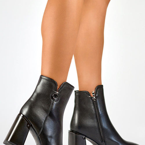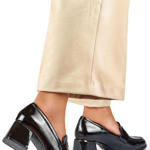 Black women's pumps made of patent eco-leather are an elegant choice for spring, summer and all year round. The natural leather insole ensures high wearing comfort. The pointed toe gives them a sophisticated look, while the stable 5.5 cm high stiletto heel adds elegance and confidence to your step. These pumps will perfectly complement both formal and everyday styling, combining...