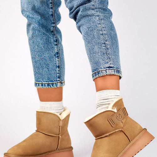 Beige women's snow boots made of natural leather are the perfect choice for the cold days of the autumn-winter season. The upper, 12 cm high and 15 cm wide, provides comfort and shields the leg well from the cold. The shoes are padded with soft, eco-friendly fur, which offers extra warmth and comfort. The 4-cm platform guarantees stability and insulation...