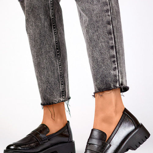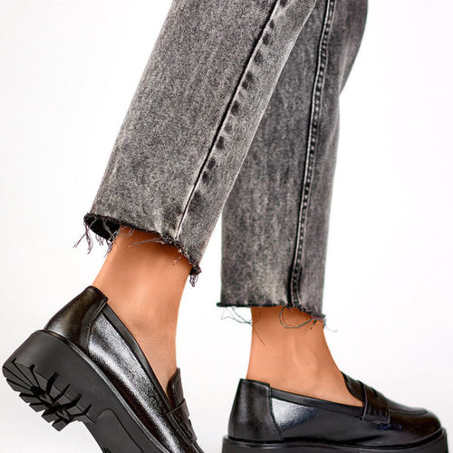 Black women's moccasins are an elegant and comfortable choice for spring and summer, which will also work perfectly at other times of the year. Made of patent eco-leather, they look stylish and fashionable, and their classic design is easy to match with various stylizations. The inside of the shoes is lined with natural leather, providing comfort for all-day wear. The...