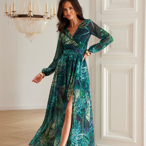 The maxi dress Alessia is a combination of stylish design with exceptional comfort. Its flowing cut and patterned chiffon fabric give lightness and subtle elegance to the whole look. Floor-length, always in style, makes the model look elegant regardless of the occasion. The wrap neckline delicately accentuates the neck, and the front slit visually slims the silhouette. Long, puffy sleeves...