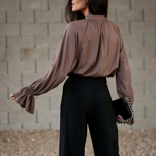 Model Camila is a perfect combination of comfort and elegance. The blouse made of lightweight viscose ensures pleasant wearing and naturally fits the silhouette. Wide sleeves finished with a double flounce add lightness and a unique character to it, and the loose fit makes it suitable for various body types. Camila looks great in both casual outfits with jeans and...