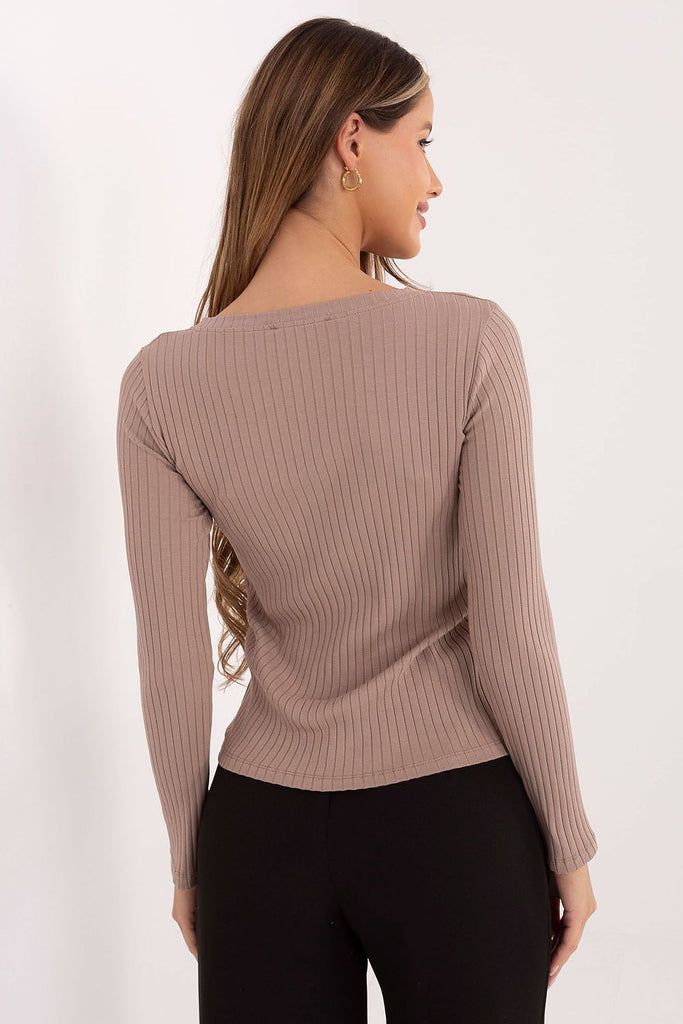 Stylish women's blouse with a casual character, perfect for work, everyday wear, or weekend outings. Made of soft cotton with a touch of elastane, it ensures comfort and great fit. The smooth, ribbed material gives it a modern, subtly elegant look. The model has a standard length and long sleeves, making it suitable for any time of the year. The...