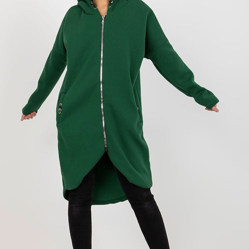 Sweatshirt with an extended cut, zippered. Sweatshirt with long sleeves and a hood. Slip-in pockets on the sides. Cotton 90 % Spandex 10 % Size Chest L/XL 91-96 cm S/M 82-86 cm