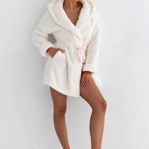 Cute and warm Sephora bathrobe, a must-have addition to your closet for your favorite pajamas. Perfect for winter evenings. Robe with hood, tied at the waist with a satin belt. At the height of the hips comfortable pockets. Made in Poland! Polyester 100 % Size Hips Chest L/XL 99-106 cm 90-97 cm S/M 90-98 cm 82-89 cm